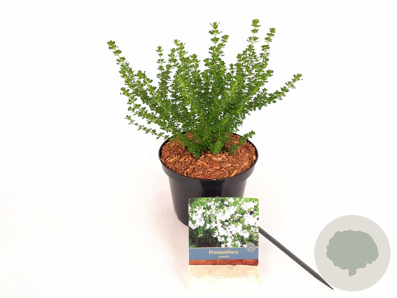 | Toelichting | Prostanthera, met paarse bloemen en groen blad, bloeit in mei-juni en wordt ongeveer 100 cm hoog. Plant op een zonnige tot halfschaduwrijke plek in zandgrond, lichte klei of neutrale grond voor een prachtige toevoeging aan je tuin. |