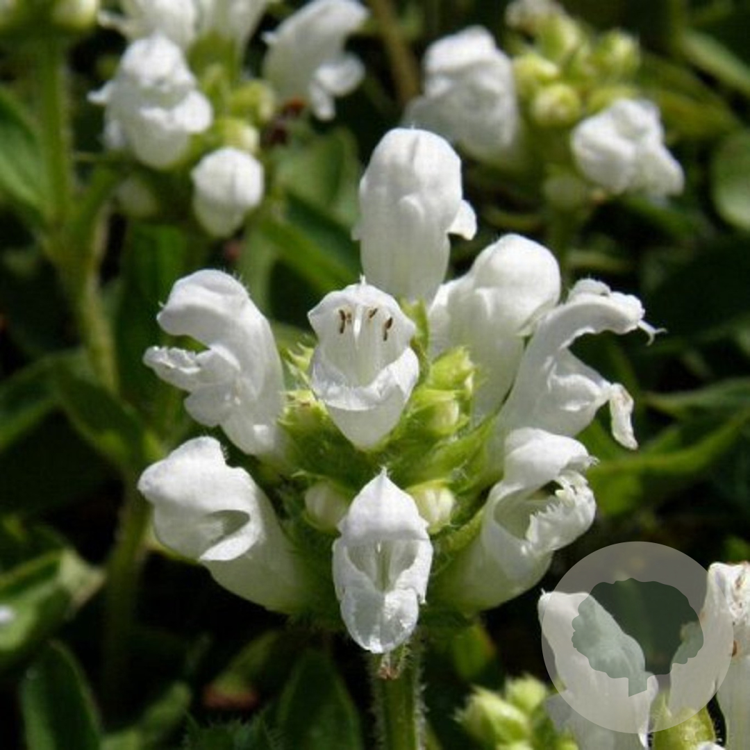 ToelichtingHelmkruid (Prunella grandiflora 'Alba') is een prachtige vaste plant met witte bloemen en groen blad. De plant bloeit van mei tot augustus en gedijt goed in zon en halfschaduw op neutrale, goede tuingrond met humus.