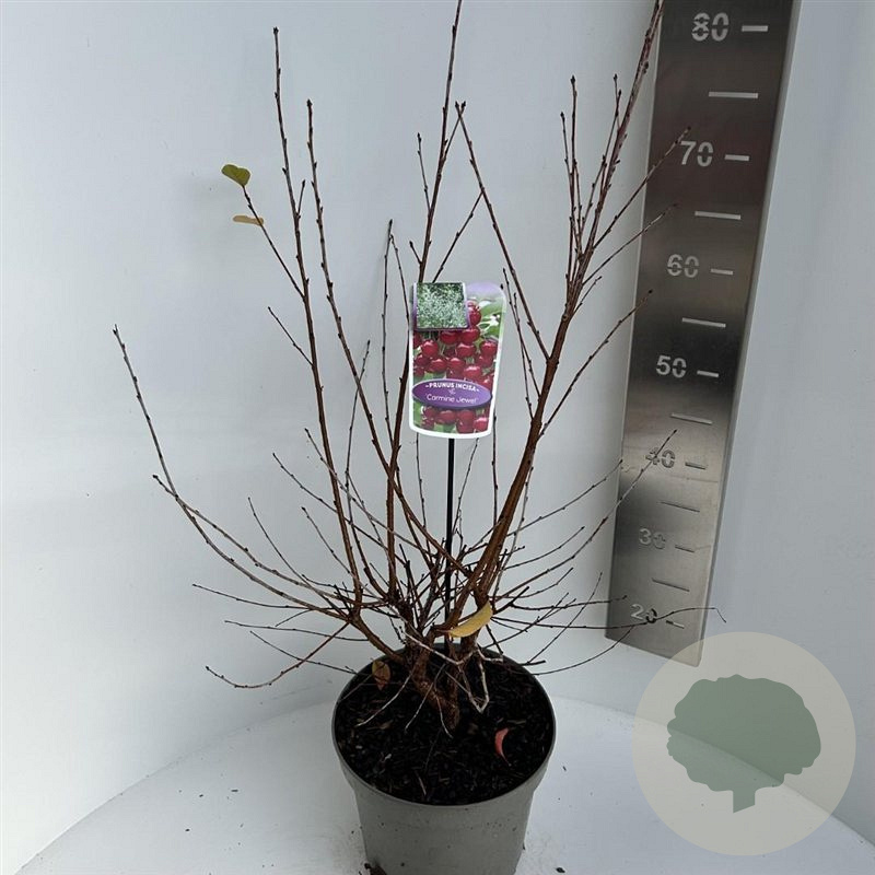 | Toelichting | De Kerspruim 'Carmine Jewel' is een prachtige sierkers met roze bloemen in april en mei. Deze compacte struik wordt ongeveer 200 cm hoog en gedijt goed in zonnige tot halfschaduwrijke plekken met zandgrond, lichte klei of neutrale grond. |