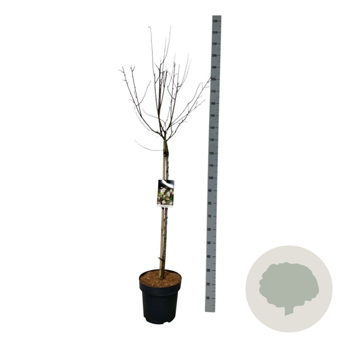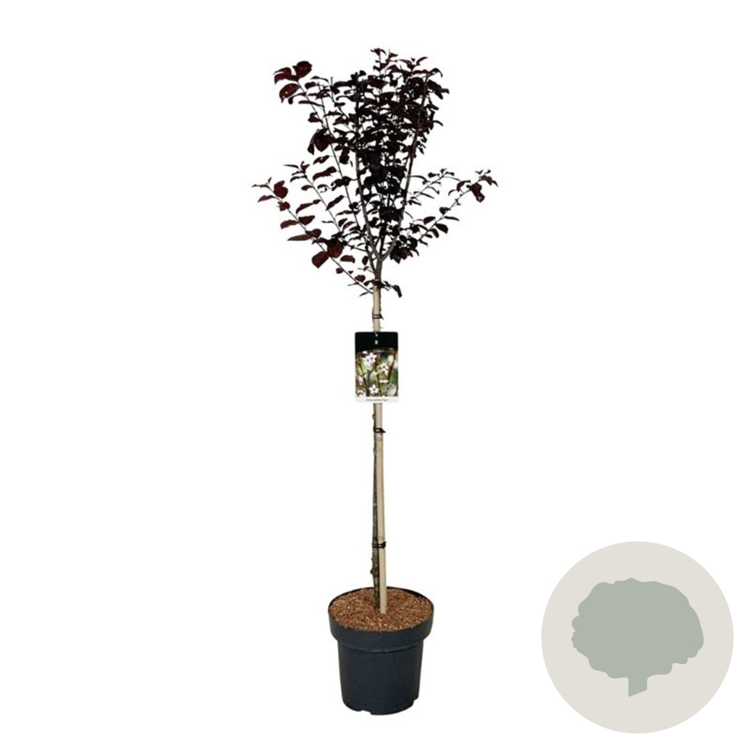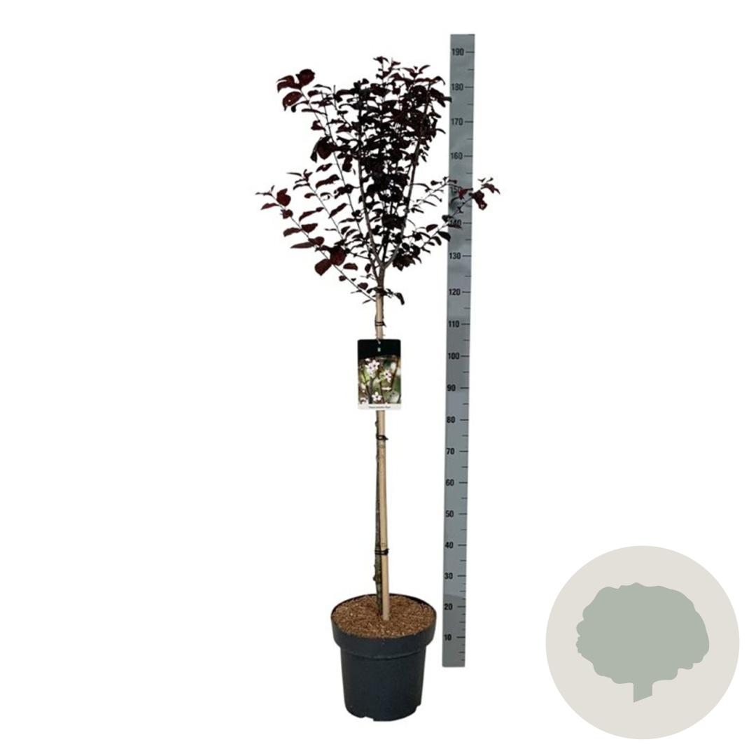 | Toelichting | De Prunus cer. 'Nigra', ook wel bekend als de Sierkers, is een prachtige boom met roze bloemen in april en mei. Het donkergroene blad en de volwassen hoogte van 400 cm maken het een mooie aanvulling voor zowel zonnige als halfschaduwrijke tuinen. |