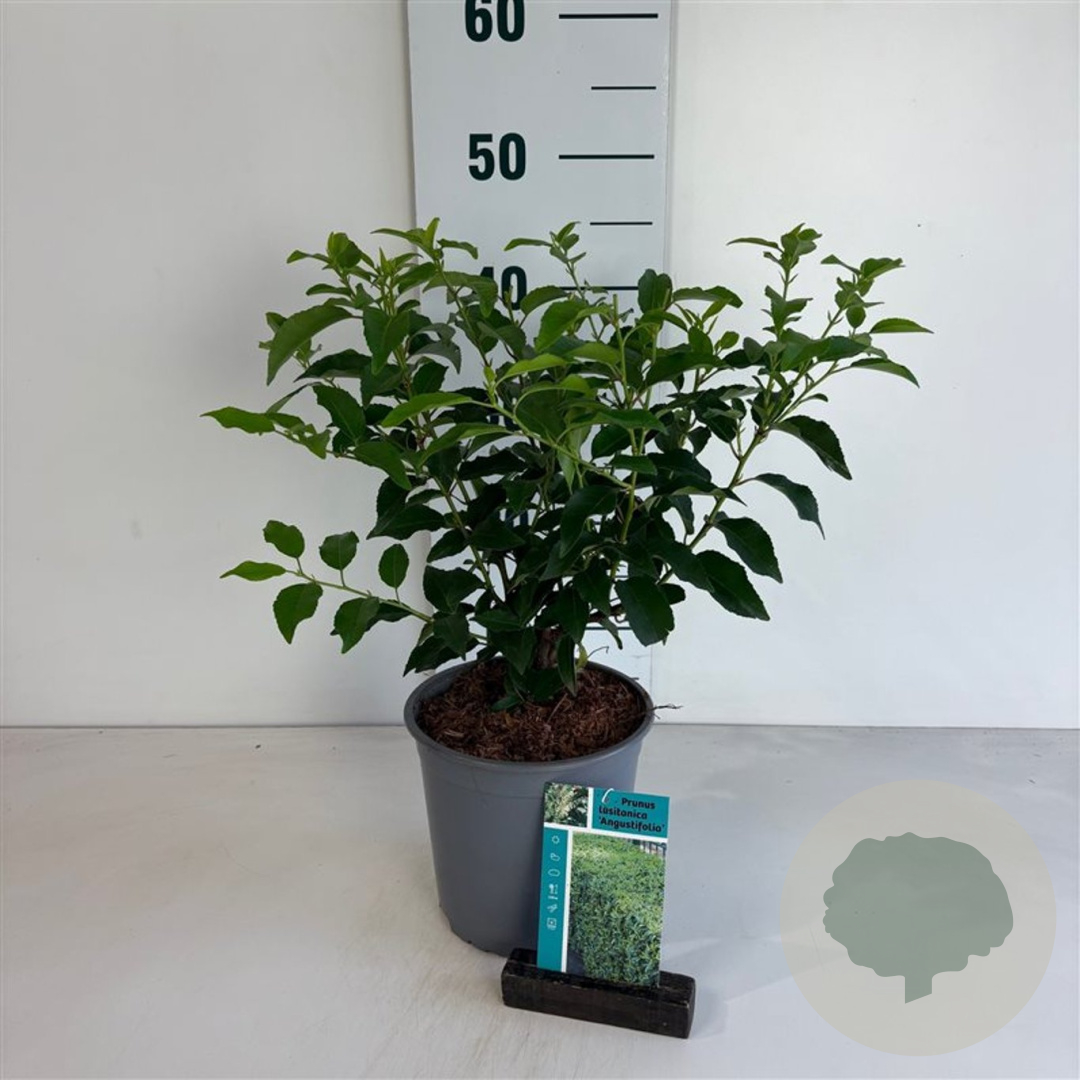| Toelichting | De Laurierkers 'Angustifolia' is een prachtige groenblijvende struik met witte bloemen in april en mei. Het donkergroene blad en de compacte groei maken het een ideale haagplant voor zowel zonnige als halfschaduwrijke plekken in de tuin. |