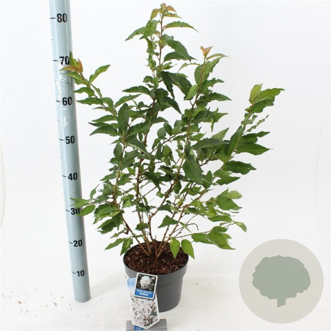ToelichtingDe Japanse sierkers 'Brillant' is een prachtige sierboom met witte bloemen in april en mei. De boom wordt ongeveer 200 cm hoog en gedijt goed in zon en halfschaduw op neutrale, goede tuingrond met humus.