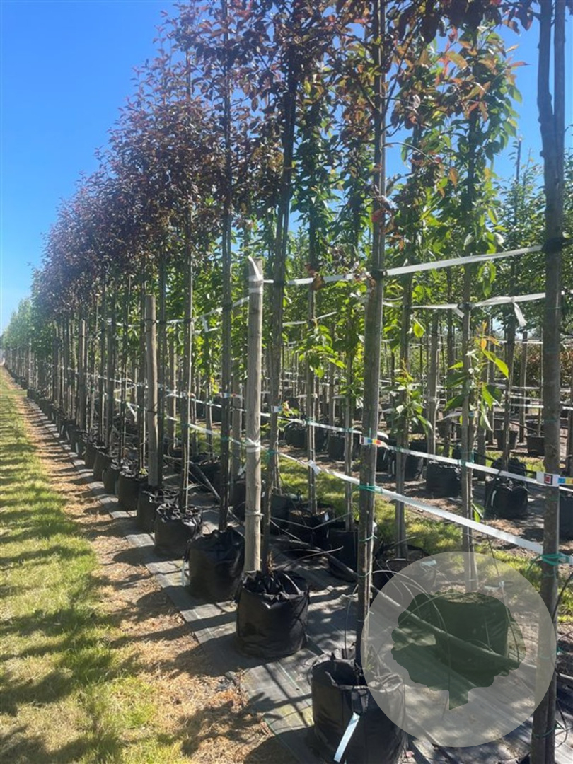 Vogelkers 'Colorata' (Prunus padus 'Colorata') – Bloesemboom hoogstam 10–12 cm stam, in container