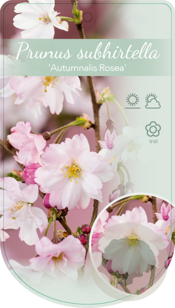 | Toelichting | De Winterbloeiende sierkers (Prunus subh. 'Autumnalis Rosea') is een prachtige sierboom met roze bloemen die bloeien van november tot maart. De boom wordt ongeveer 200 cm hoog en gedijt goed in zonnige tot halfschaduwrijke omgevingen met zand- of neutrale grond. |