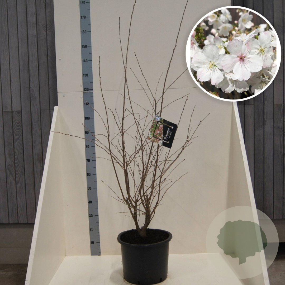 | Toelichting | De Prunus 'The Bride', ook bekend als Sierkers, is een prachtige sierboom met witte bloemen in de lente. Deze boom bereikt een hoogte van 200 cm en bloeit in april en mei. Plant hem in zon of halfschaduw op neutrale, goede tuingrond voor een mooie bloei. |