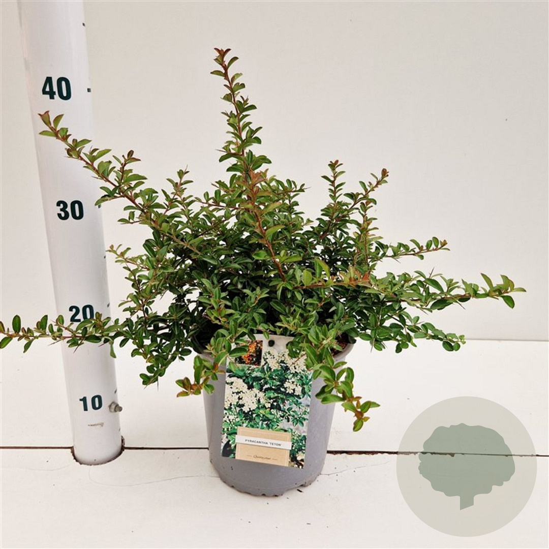 | Toelichting | De Vuurdoorn 'Teton' is een prachtige heester met witte bloemen in mei-juni. Het donkergroene blad en de rode bessen in de herfst maken deze plant een aanwinst voor elke tuin. Geschikt voor zon en halfschaduw op zand- en neutrale grond. |