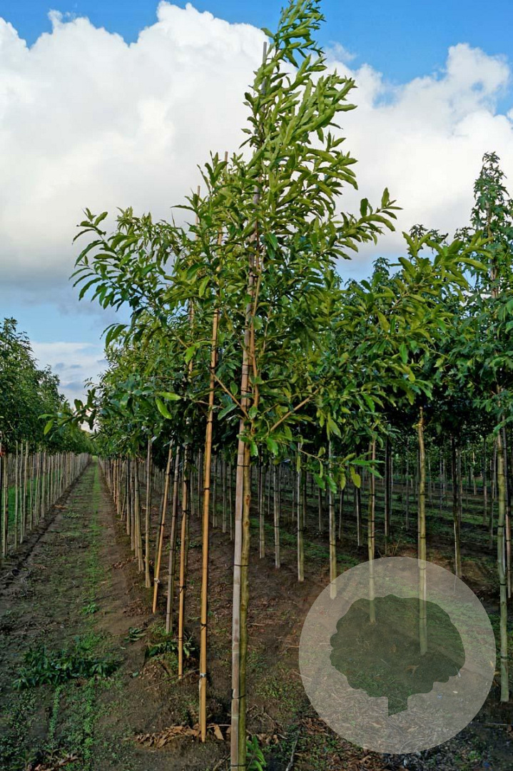 | Toelichting | De Scherpe eik (Quercus acutissima) is een imposante boom met geelgroene bloemen in april en mei. Deze niet-inheemse soort gedijt goed in zonnige standplaatsen op zand- of neutrale grond. Bereikt een hoogte van 15 meter en heeft groen blad. |