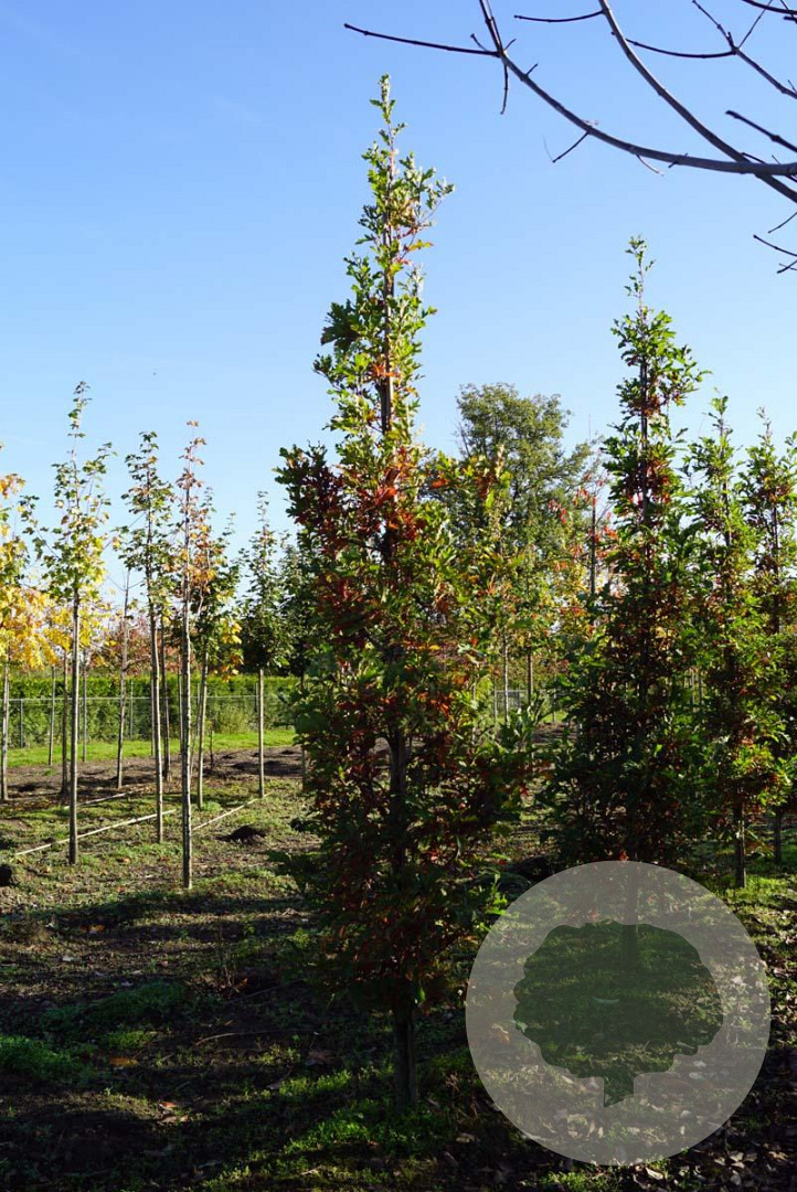 | Toelichting | De Rode zuilvormige eik (Quercus bimundorum Crimson Spire) is een prachtige boom met een slanke groeiwijze en groen blad. In mei en juni bloeit deze boom, die het beste gedijt in de zon op zandgrond, neutrale grond of goede tuingrond. |