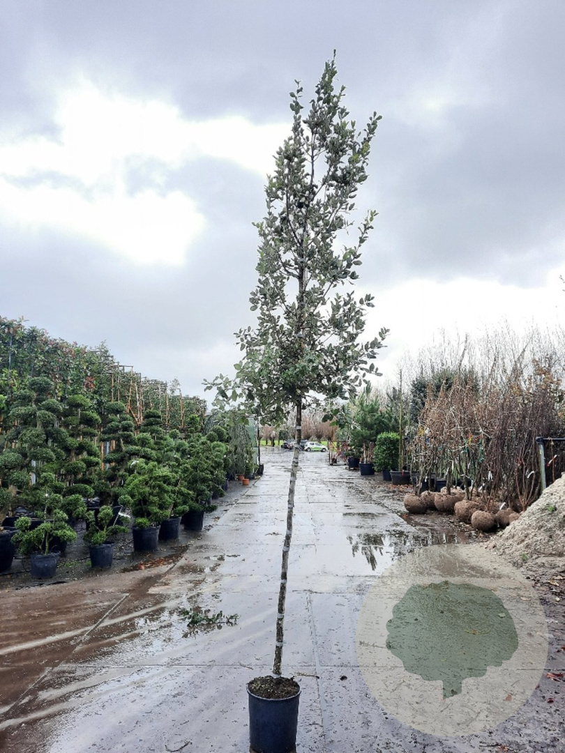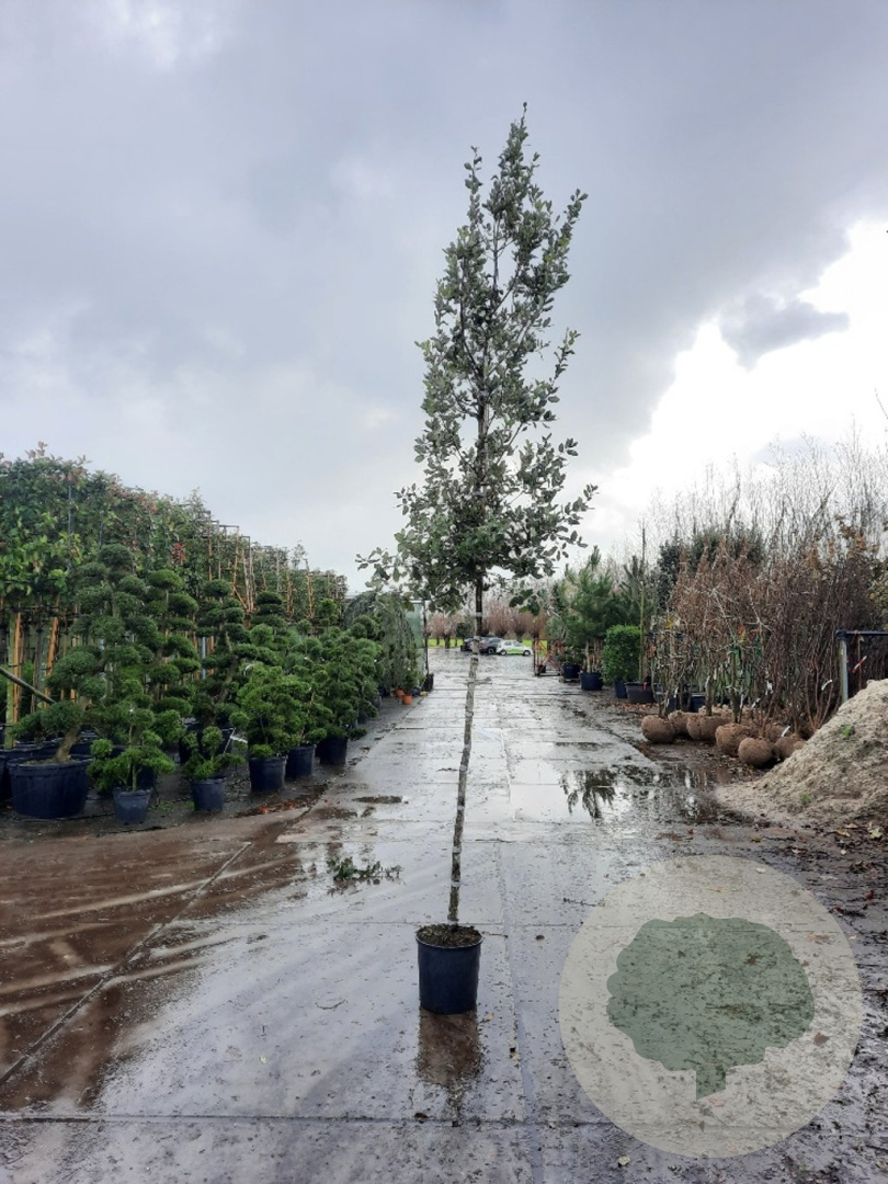 Toelichting | De Steeneik (Quercus ilex) is een prachtige groenblijvende boom met donkergroene bladeren en gele bloemen in april - mei. Hij wordt ongeveer 800 cm hoog en gedijt goed in zonnige standplaatsen op diverse grondsoorten. |
