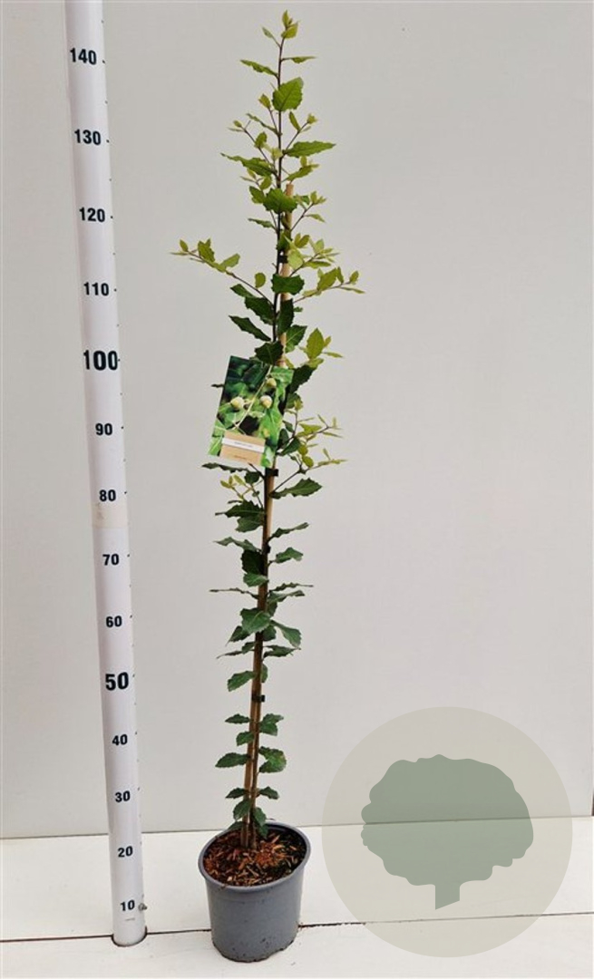 | Toelichting | De Steeneik (Quercus ilex) is een prachtige groenblijvende boom met donkergroene bladeren en gele bloemen in april - mei. Hij wordt ongeveer 800 cm hoog en gedijt goed in zonnige standplaatsen op diverse grondsoorten. |