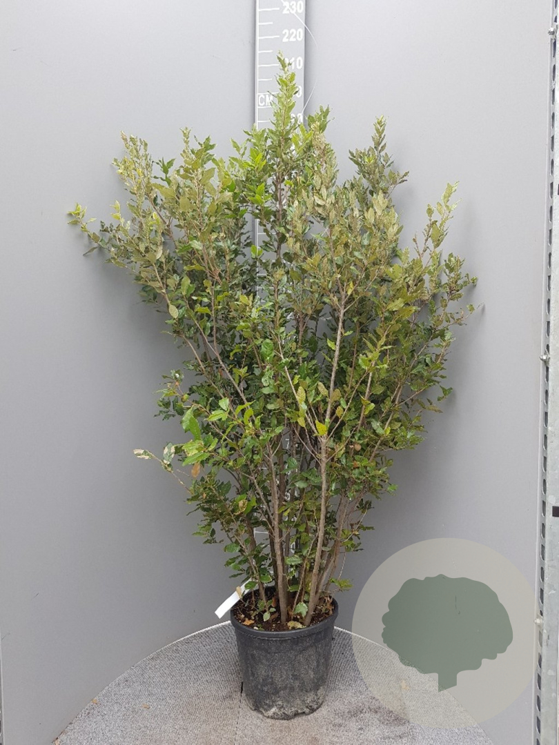 | Toelichting | De Steeneik (Quercus ilex) is een prachtige groenblijvende boom met donkergroene bladeren en gele bloemen in april - mei. Hij wordt ongeveer 800 cm hoog en gedijt goed in zonnige standplaatsen op diverse grondsoorten. |
