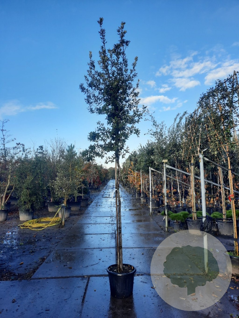| Toelichting | De Steeneik (Quercus ilex) is een prachtige groenblijvende boom met donkergroene bladeren en gele bloemen in april - mei. Hij wordt ongeveer 800 cm hoog en gedijt goed in zonnige standplaatsen op diverse grondsoorten. |