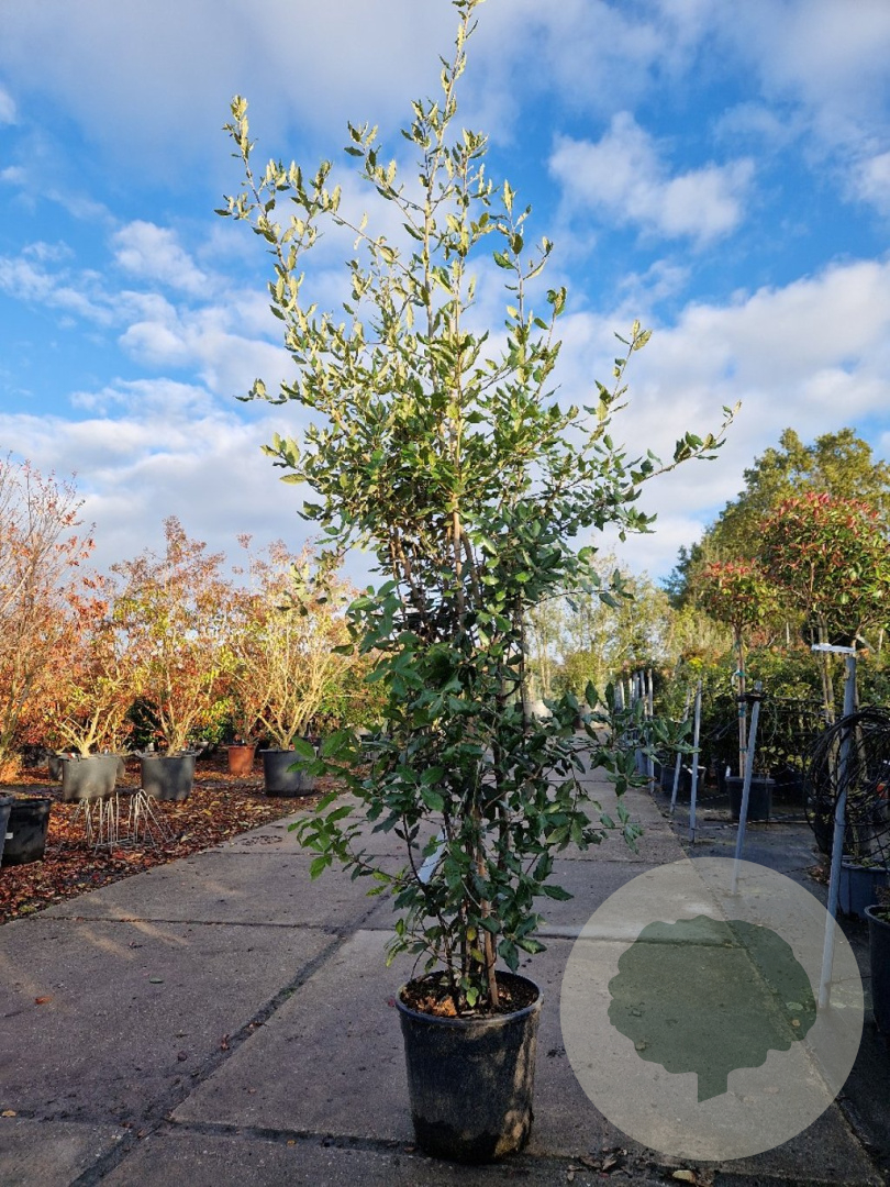 | Toelichting | De Steeneik (Quercus ilex) is een prachtige groenblijvende boom met donkergroene bladeren en gele bloemen in april - mei. Hij wordt ongeveer 800 cm hoog en gedijt goed in zonnige standplaatsen op diverse grondsoorten. |