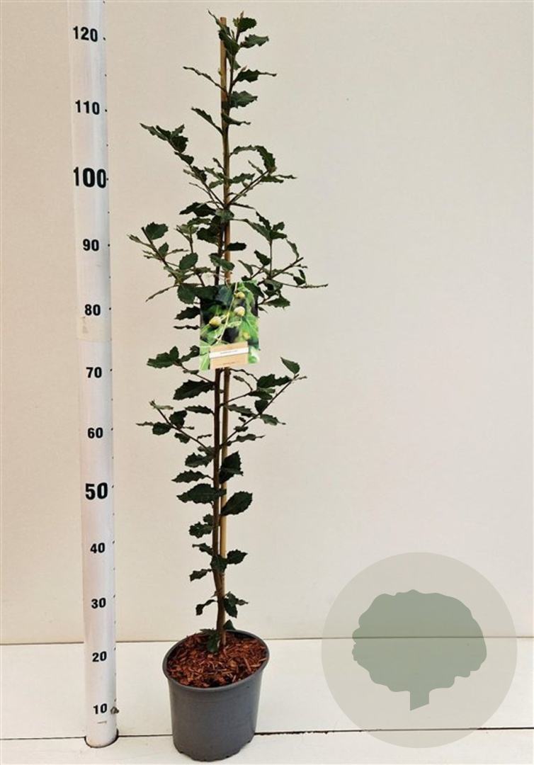 | Toelichting | De Steeneik (Quercus ilex) is een prachtige groenblijvende boom met donkergroene bladeren en gele bloemen in april - mei. Hij wordt ongeveer 800 cm hoog en gedijt goed in zonnige standplaatsen op diverse grondsoorten. |