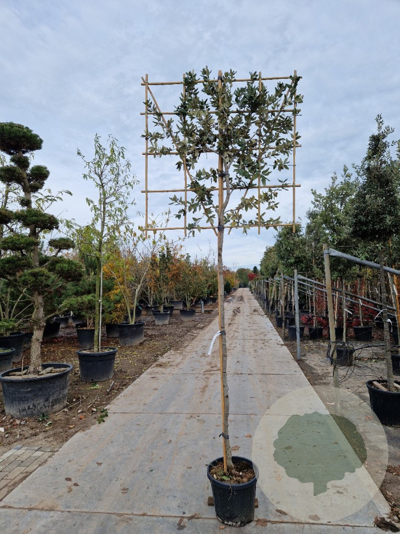 | Toelichting | De Steeneik (Quercus ilex) is een prachtige groenblijvende boom met donkergroene bladeren en gele bloemen in april - mei. Hij wordt ongeveer 800 cm hoog en gedijt goed in zonnige standplaatsen op diverse grondsoorten. |