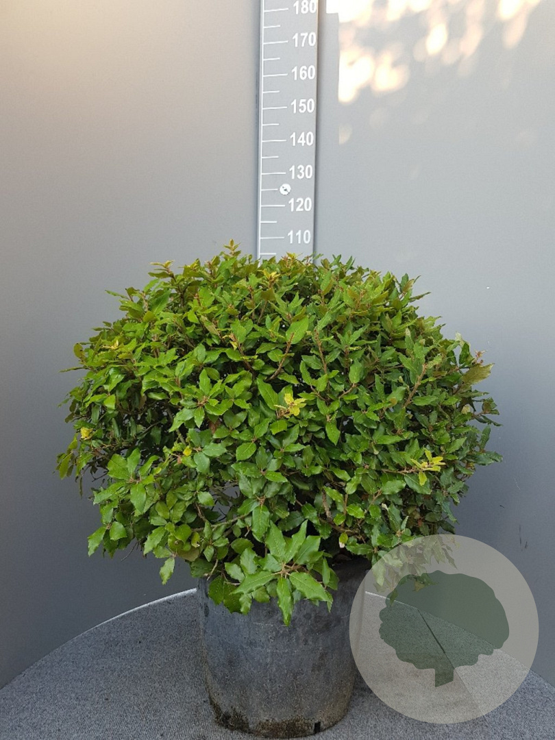 | Toelichting | De Steeneik (Quercus ilex) is een prachtige groenblijvende boom met donkergroene bladeren en gele bloemen in april - mei. Hij wordt ongeveer 800 cm hoog en gedijt goed in zonnige standplaatsen op diverse grondsoorten. |
