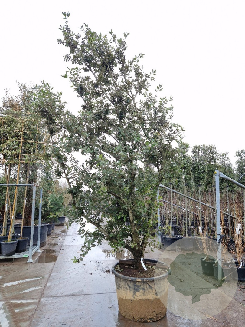 | Toelichting | De Steeneik (Quercus ilex) is een prachtige groenblijvende boom met donkergroene bladeren en gele bloemen in april - mei. Hij wordt ongeveer 800 cm hoog en gedijt goed in zonnige standplaatsen op diverse grondsoorten. |