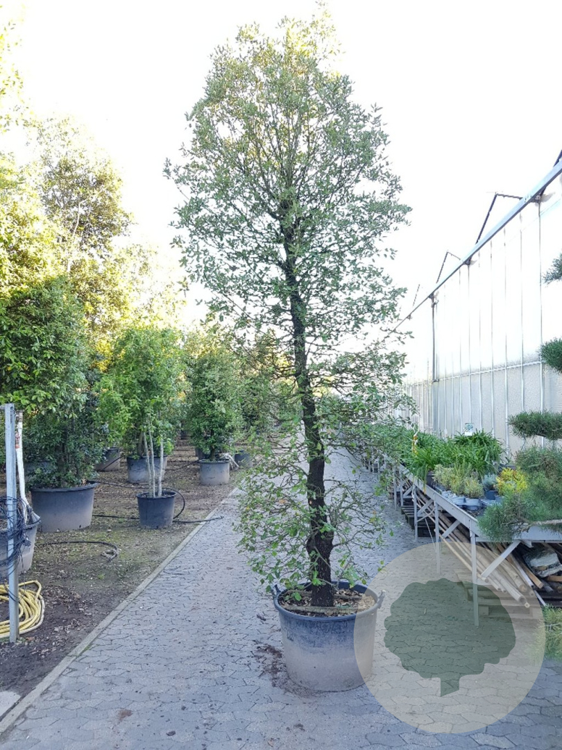 | Toelichting | De Steeneik (Quercus ilex) is een prachtige groenblijvende boom met donkergroene bladeren en gele bloemen in april - mei. Hij wordt ongeveer 800 cm hoog en gedijt goed in zonnige standplaatsen op diverse grondsoorten. |
