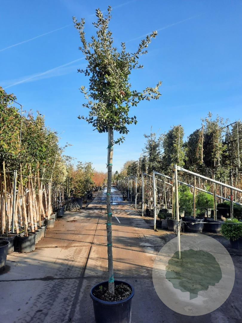 | Toelichting | De Steeneik (Quercus ilex) is een prachtige groenblijvende boom met donkergroene bladeren en gele bloemen in april - mei. Hij wordt ongeveer 800 cm hoog en gedijt goed in zonnige standplaatsen op diverse grondsoorten. |