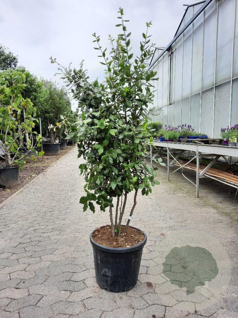 | Toelichting | De Steeneik (Quercus ilex) is een prachtige groenblijvende boom met donkergroene bladeren en gele bloemen in april - mei. Hij wordt ongeveer 800 cm hoog en gedijt goed in zonnige standplaatsen op diverse grondsoorten. |