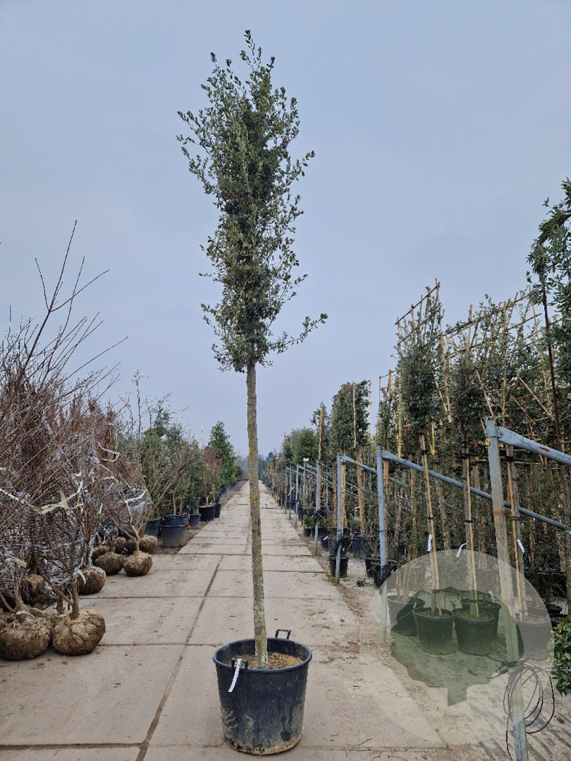 | Toelichting | De Steeneik (Quercus ilex) is een prachtige groenblijvende boom met donkergroene bladeren en gele bloemen in april - mei. Hij wordt ongeveer 800 cm hoog en gedijt goed in zonnige standplaatsen op diverse grondsoorten. |