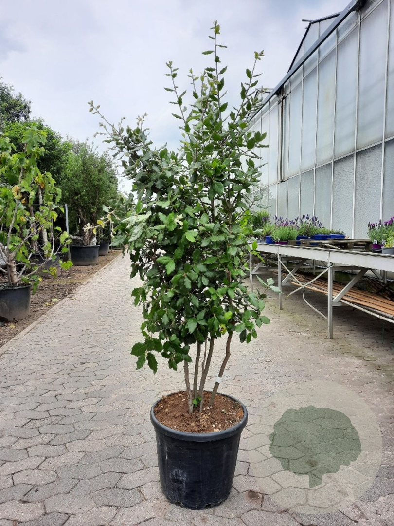 | Toelichting | De Steeneik (Quercus ilex) is een prachtige groenblijvende boom met donkergroene bladeren en gele bloemen in april - mei. Hij wordt ongeveer 800 cm hoog en gedijt goed in zonnige standplaatsen op diverse grondsoorten. |