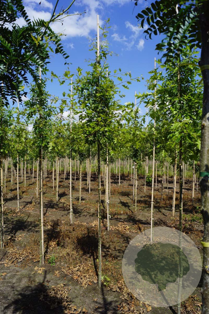 Quercus palustris 12-14 HO container lei 200cm stam lei 150x120