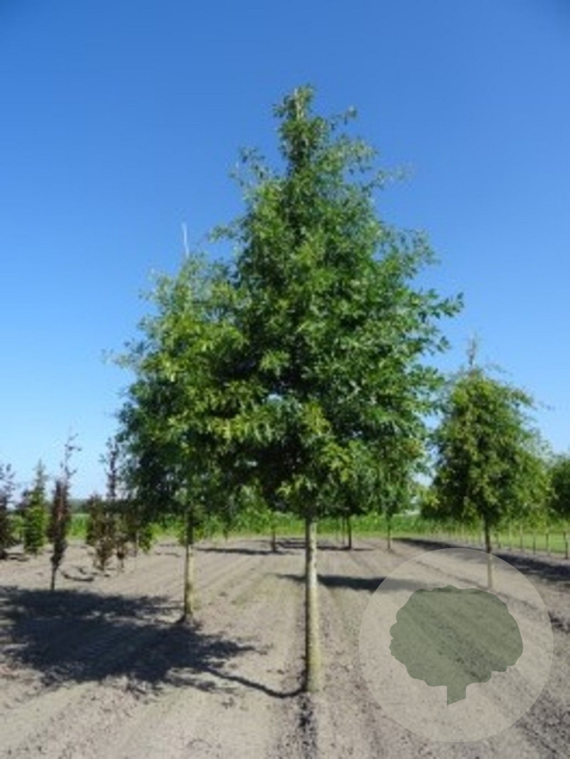 Toelichting | De Moeraseik is een imposante boom met groen blad en gele bloemen in april en mei. Hij kan wel 20 meter hoog worden en gedijt goed in zon en halfschaduw op diverse grondsoorten. |