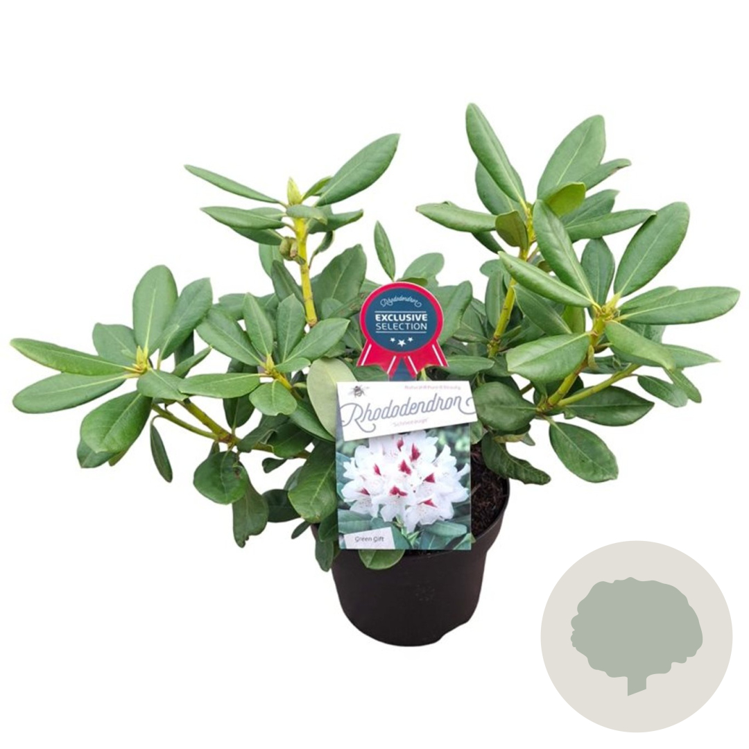| Toelichting | De Rhododendron 'Schneeauge' is een prachtige struik met witte bloemen die bloeien in april en mei. De plant wordt ongeveer 150 cm hoog en gedijt het beste in halfschaduw op zure, humusrijke grond. Perfect voor een kleurrijke tuin! |