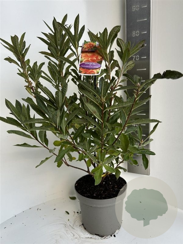 | Toelichting | De Rhododendron 'H.H. Witte' is een prachtige heester met donkergroene bladeren en witte bloemen in de periode april - mei. Deze plant gedijt het beste in de halfschaduw op zure en humusrijke grond. De volwassen hoogte is ongeveer 150 cm. |