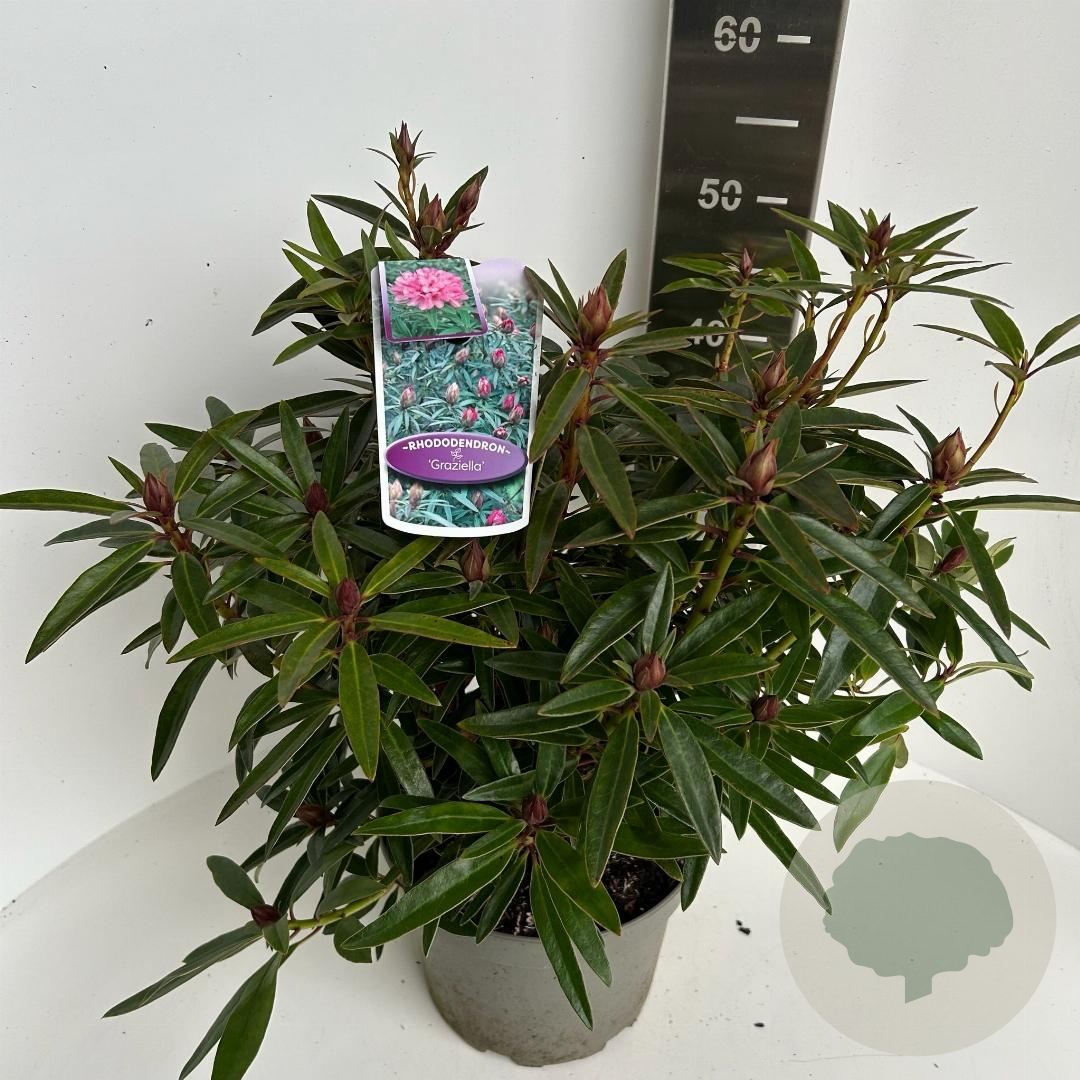 | Toelichting | De Rhododendron 'Graziella' is een prachtige struik met roze bloemen en groen blad. Deze sierlijke plant bloeit in april en mei en gedijt het beste in de halfschaduw op zure, humusrijke grond. De volwassen hoogte is ongeveer 150 cm. |