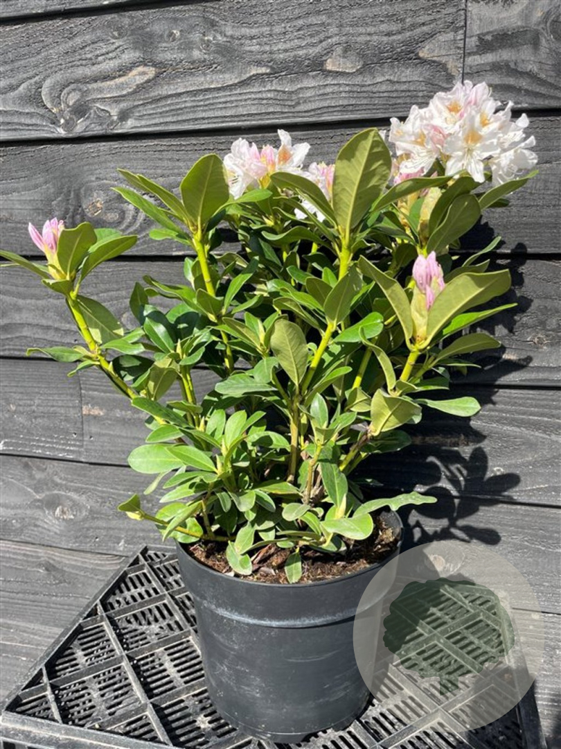 Grootbloemige rododendron 'Cunningham's White' (Rhododendron) 40–50 cm kopen? Groenblijvende struik in container met uitbundige witte bloei in mei, sterk en winterhard.