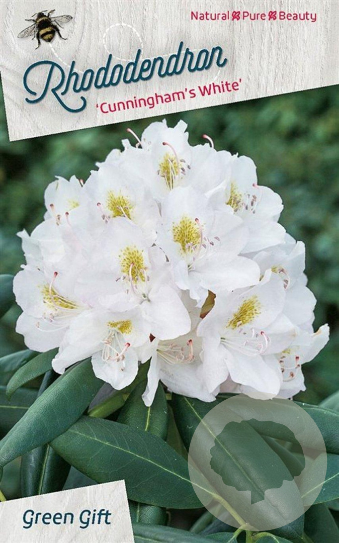 | Toelichting | De Rhododendron 'Cunningham's White' is een prachtige struik met donkergroene bladeren en witte bloemen in de periode mei-juni. Deze niet-inheemse plant gedijt het beste in halfschaduw op zure en humusrijke grond. |
