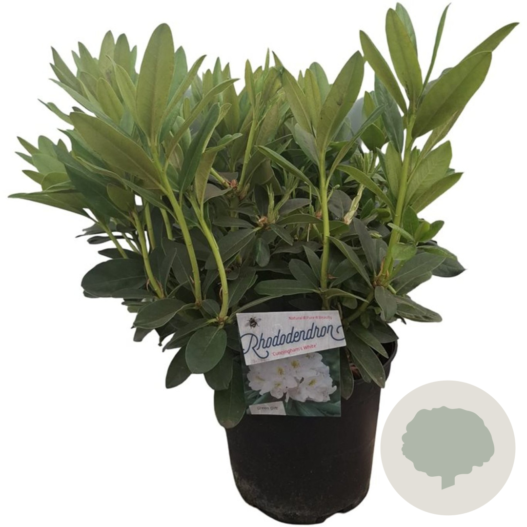 | Toelichting | De Rhododendron 'Cunningham's White' is een prachtige struik met donkergroene bladeren en witte bloemen in de periode mei-juni. Deze niet-inheemse plant gedijt het beste in halfschaduw op zure en humusrijke grond. |
