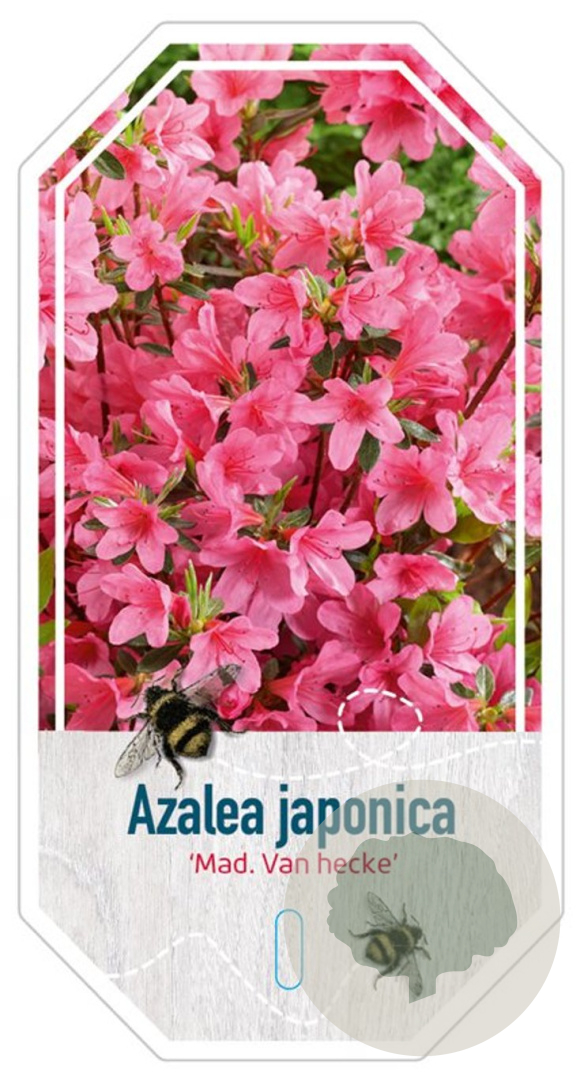 | Toelichting | De Rhododendron 'Madame van Hecke' is een prachtige struik met roze bloemen die bloeien in mei en juni. De plant wordt ongeveer 150 cm hoog en gedijt het beste in halfschaduw op zure, humusrijke grond. |