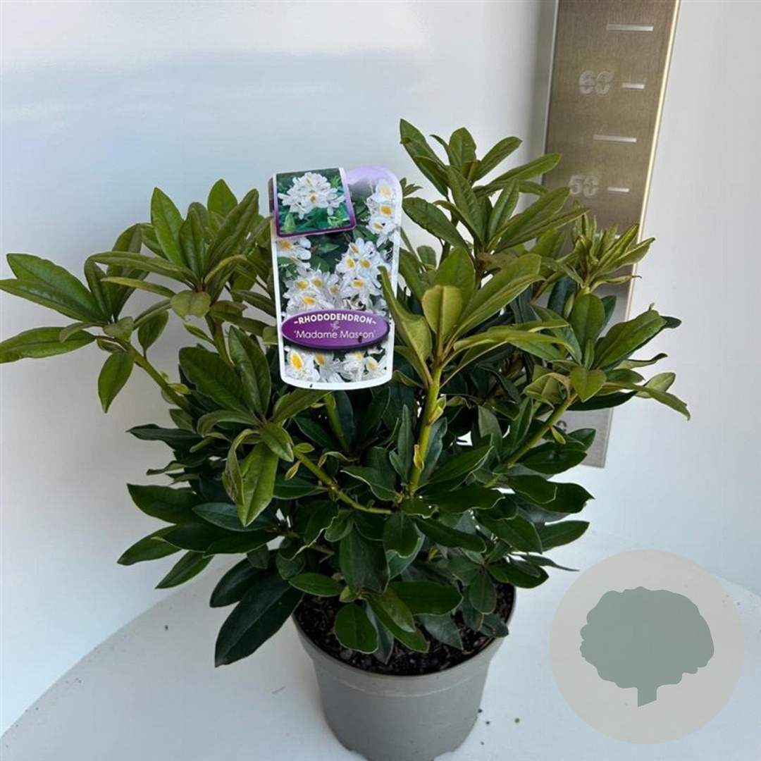 | Toelichting | Rhododendron 'Madame Masson' is een prachtige struik met witte bloemen die bloeien in mei en juni. De plant wordt ongeveer 200 cm hoog en gedijt goed in de halfschaduw op zure en humusrijke grond. |