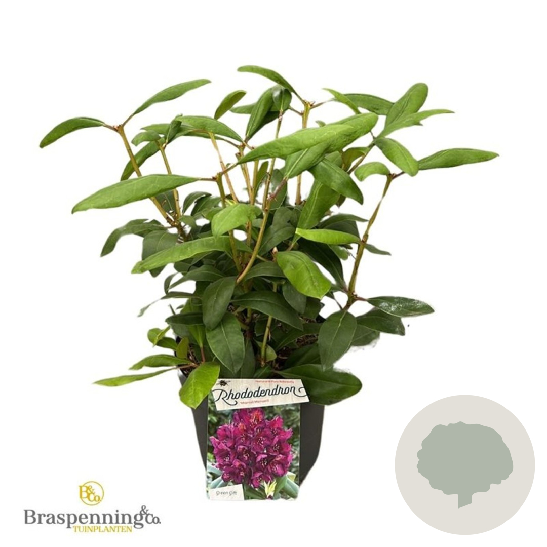 | Toelichting | De Rhododendron 'Marcel Menard' is een prachtige struik met roze bloemen en groen blad. Hij bloeit in april en mei en gedijt het beste in halfschaduw op zure en humusrijke grond. De volwassen hoogte is ongeveer 150 cm. |
