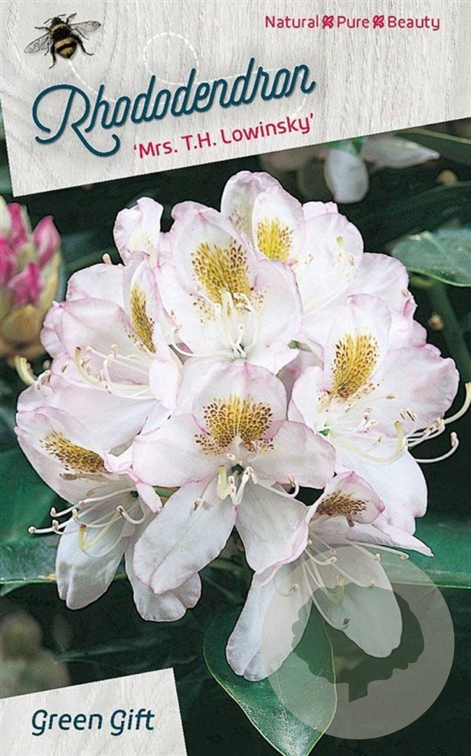 | Toelichting | Rhododendron 'Mrs T.H. Lowinsky' is een prachtige struik met roze bloemen en groen blad. Deze Rhododendron bloeit in april en mei en gedijt het beste in halfschaduw op zure en humusrijke grond. |