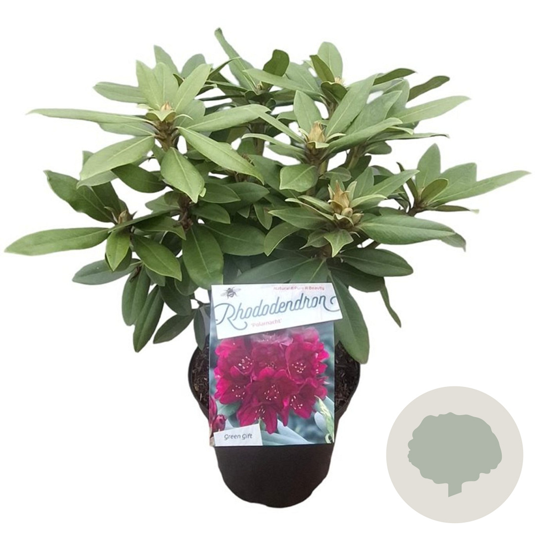 | Toelichting | De Rhododendron 'Polarnacht' is een prachtige heester met donkergroene bladeren en paarse bloemen in april en mei. Deze niet-inheemse plant gedijt goed in de halfschaduw op zure, humusrijke grond. Bereikt een volwassen hoogte van 150 cm. |
