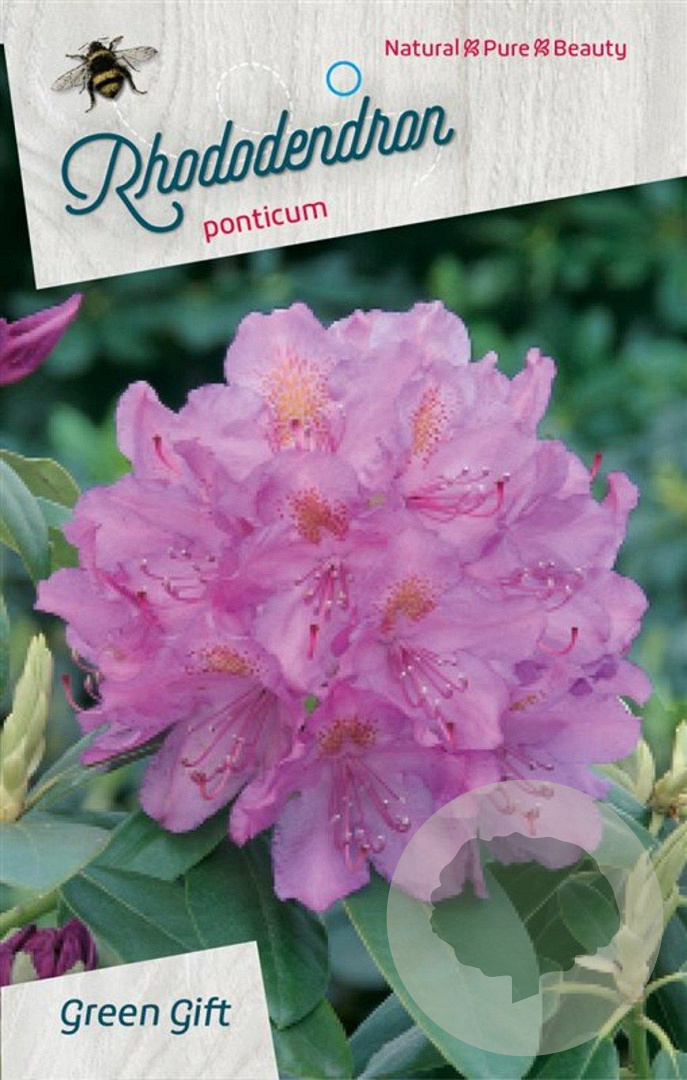 ToelichtingDe Rhododendron is een prachtige heester met roze en paarse bloemen die bloeit in april en mei. Deze niet-inheemse plant gedijt goed in de halfschaduw op zure en humusrijke grond, en bereikt een hoogte van 200 cm.
