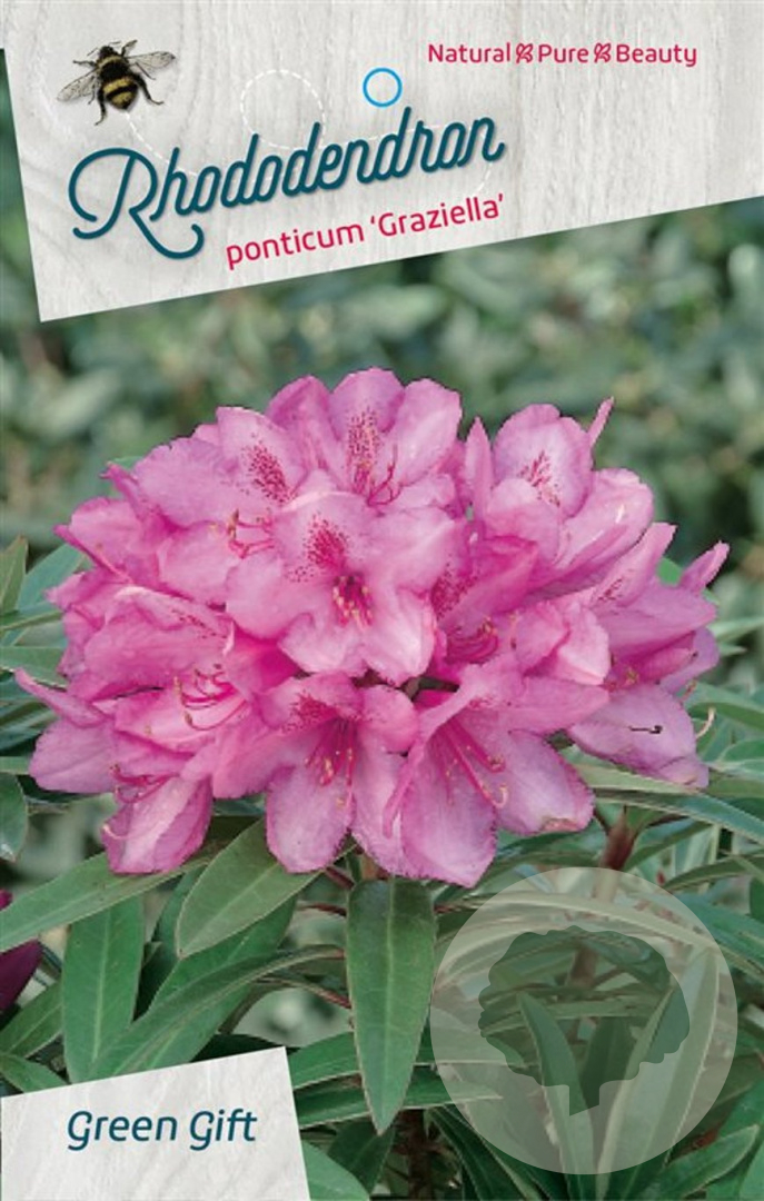 | Toelichting | De Rhododendron ponticum 'Graziella' is een prachtige struik met roze bloemen en groen blad. Deze Rhododendron bloeit in april en mei en gedijt het beste in halfschaduw op zure en humusrijke grond. De volwassen hoogte van deze plant is ongeveer 200 cm. |