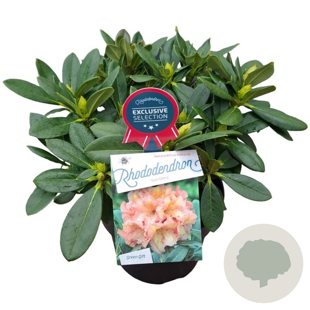 | Toelichting | De Rhododendron 'Sun Glory' is een prachtige struik met donkergroene bladeren en roze bloemen. Deze Rhododendron bloeit in april en mei en gedijt het beste in halfschaduw op zure en humusrijke grond. Met een volwassen hoogte van 200 cm is het een eyecatcher in elke tuin. |