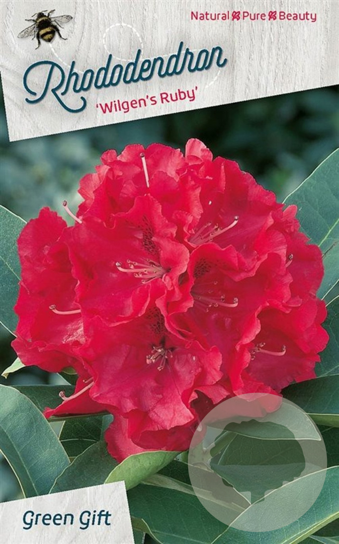 | Toelichting | Rhododendron 'Wilgen's Ruby' is een prachtige struik met donkergroene bladeren en felrode bloemen in de periode mei-juni. Deze niet-inheemse plant gedijt het beste in halfschaduw op zure, humusrijke grond. Ideaal voor een kleurrijke toevoeging aan de tuin! |