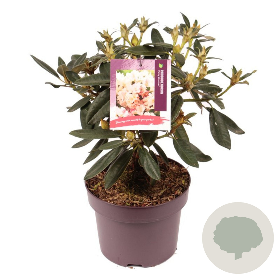 | Toelichting | De Rhododendron 'Percy Wiseman' is een prachtige struik met roze en witte bloemen in april en mei. Het donkergroene blad en de compacte groei maken het een ideale aanvulling voor de halfschaduw in zure, humusrijke grond. |