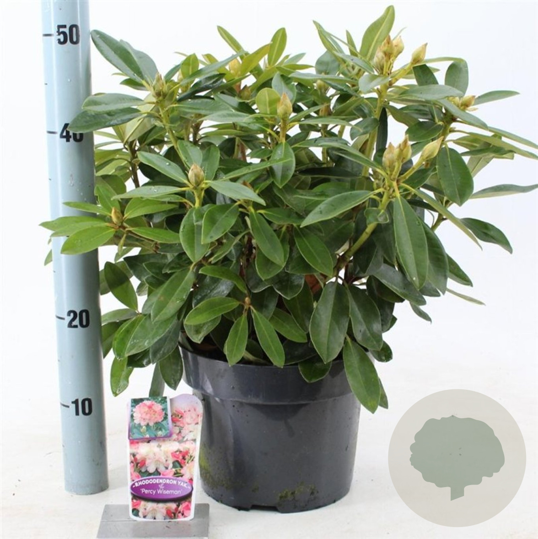 | Toelichting | De Rhododendron 'Percy Wiseman' is een prachtige struik met roze en witte bloemen in april en mei. Het donkergroene blad en de compacte groei maken het een ideale aanvulling voor de halfschaduw in zure, humusrijke grond. |