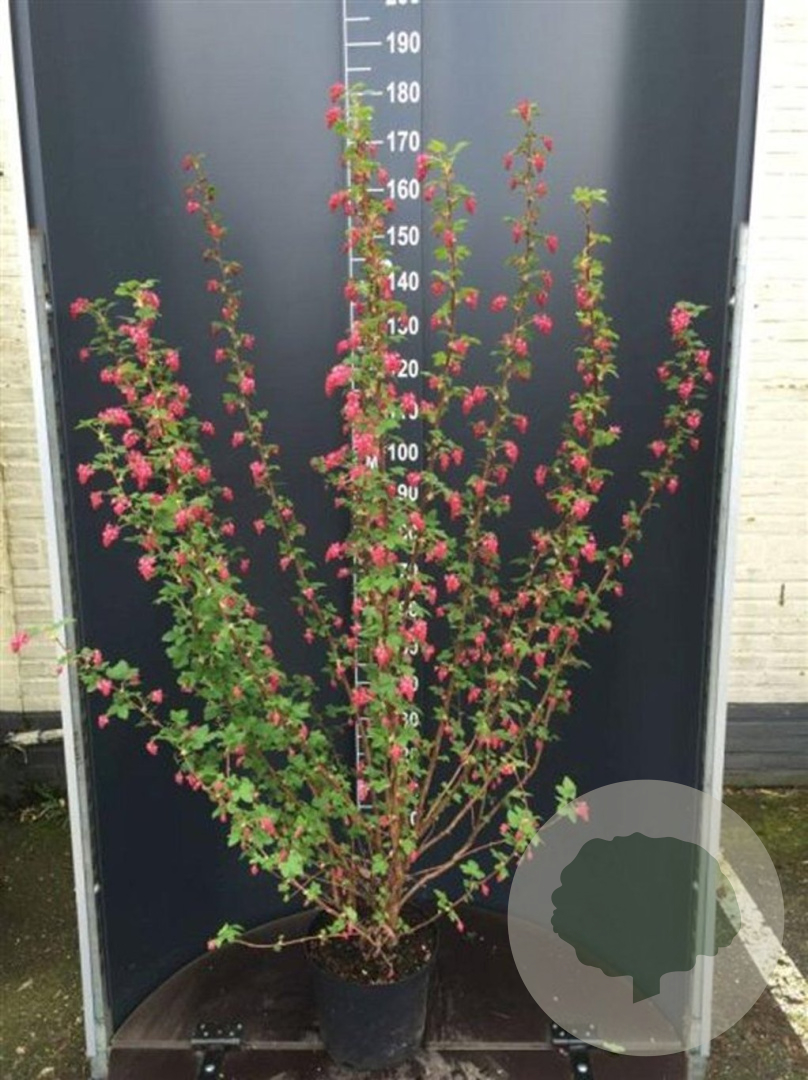 | Toelichting | De Rode Ribes (Ribes sang. 'King Edward VII') is een prachtige struik met rode bloemen in april en mei. Deze struik wordt ongeveer 150 cm hoog en gedijt goed in zonnige tot halfschaduwrijke plekken met zandgrond, lichte klei of neutrale grond. |