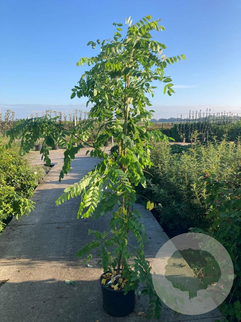 | Toelichting | De Valse acacia (Robinia marg. 'Georgia Da Torino') is een prachtige boom met witte bloemen in de periode mei - juni. Deze boom kan een hoogte bereiken van 800 cm en gedijt het beste in de volle zon op zandgrond, klei of neutrale grond. |