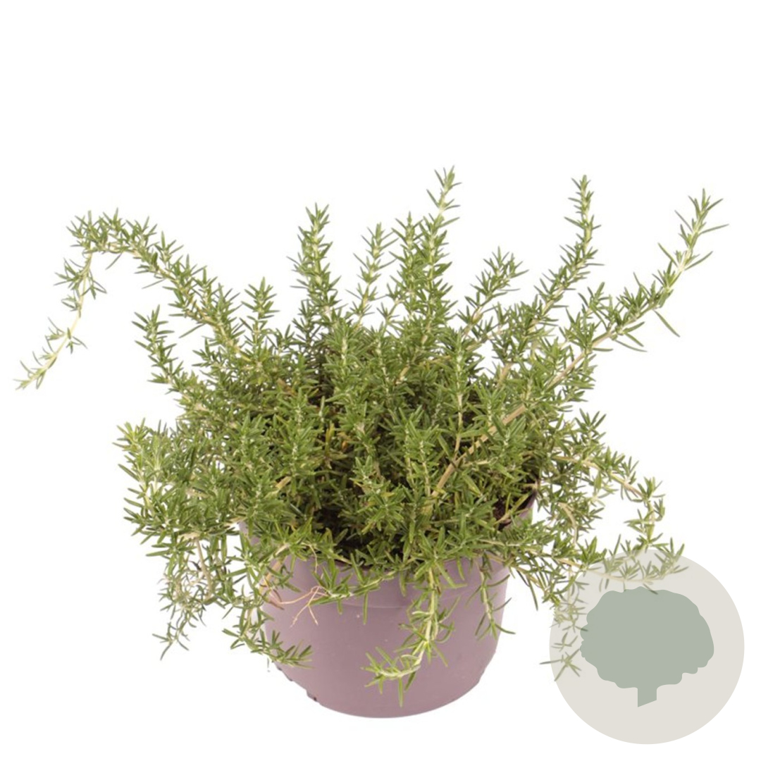 | Toelichting | Rozemarijn (Rosmarinus off. 'Capri') is een aromatische kruidenplant met blauwe bloemen die bloeit in mei - juni. Deze plant gedijt het beste in de zon op zandgrond of kalkrijke grond. Ideaal voor in de kruidentuin! |