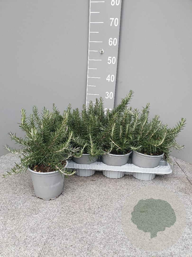 | Toelichting | Rozemarijn (Rosmarinus off. 'Prostratus') is een laagblijvende kruidenplant met blauwe bloemen en groen blad. Bloeit in mei-juni en gedijt goed in zonnige standplaatsen met goed doorlatende zand- en kalkrijke grond. |