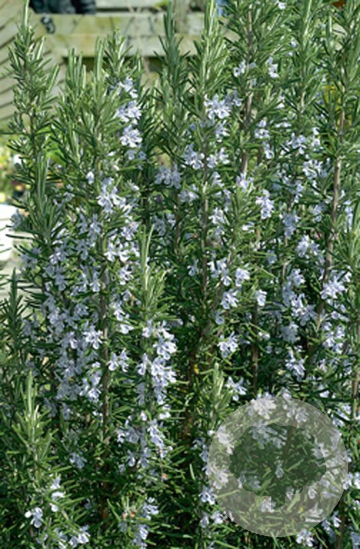 | Toelichting | Rozemarijn is een aromatische kruidenplant met blauwe tot paarse bloemen in mei-juni. De plant wordt ongeveer 100 cm hoog en gedijt goed in zonnige, goed doorlatende grond. |